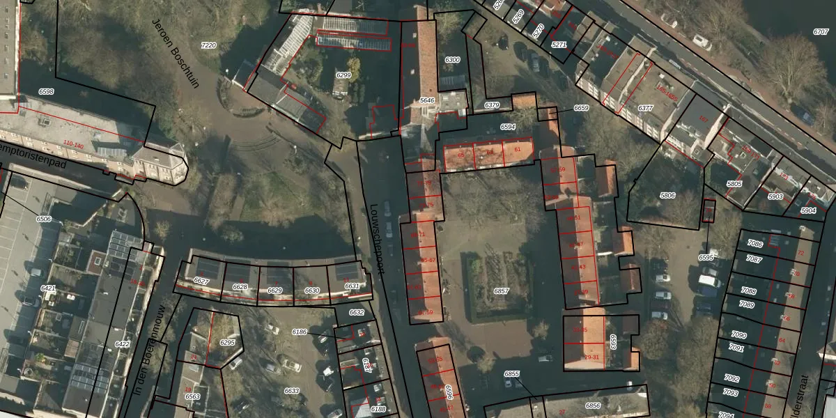 Het perceel waarop Louwschepoort 73 staat heeft een oppervlakte van 1228 m². Dit is een zeer groot perceel. De perceeloppervlakte wordt geregistreerd door het Kadaster. Gedetailleerde informatie over de maten van dit perceel kunt u vinden in het rapport Kadastrale kaart met maatvoering van Louwschepoort 73.