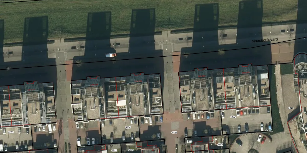 Het perceel waarop Maasboulevard 225 staat heeft een oppervlakte van 1990 m². Dit is een zeer groot perceel. De perceeloppervlakte wordt geregistreerd door het Kadaster. Gedetailleerde informatie over de maten van dit perceel kunt u vinden in het rapport Kadastrale kaart met maatvoering van Maasboulevard 225.