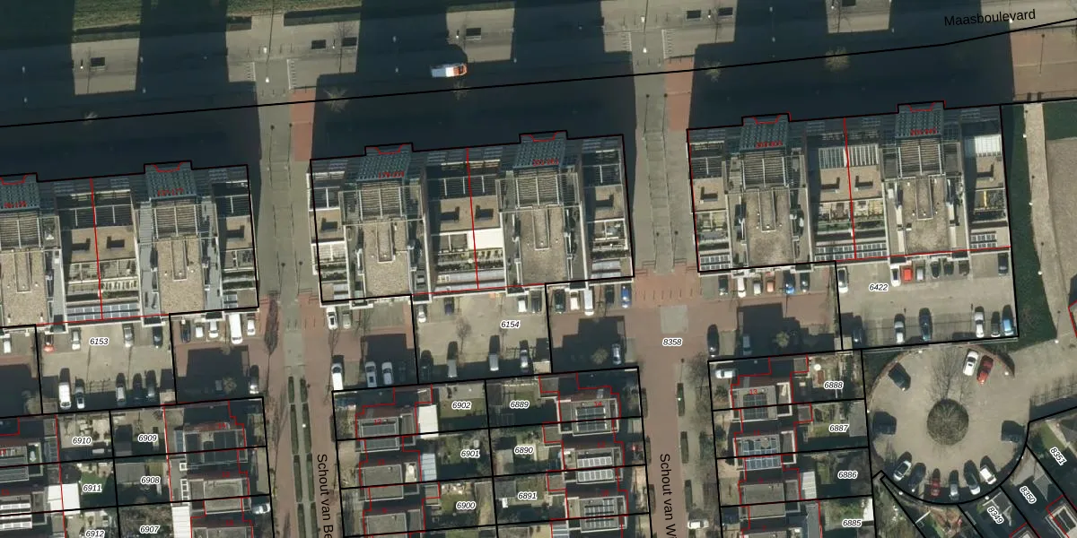 Het perceel waarop Maasboulevard 261 staat heeft een oppervlakte van 1990 m². Dit is een zeer groot perceel. De perceeloppervlakte wordt geregistreerd door het Kadaster. Gedetailleerde informatie over de maten van dit perceel kunt u vinden in het rapport Kadastrale kaart met maatvoering van Maasboulevard 261.