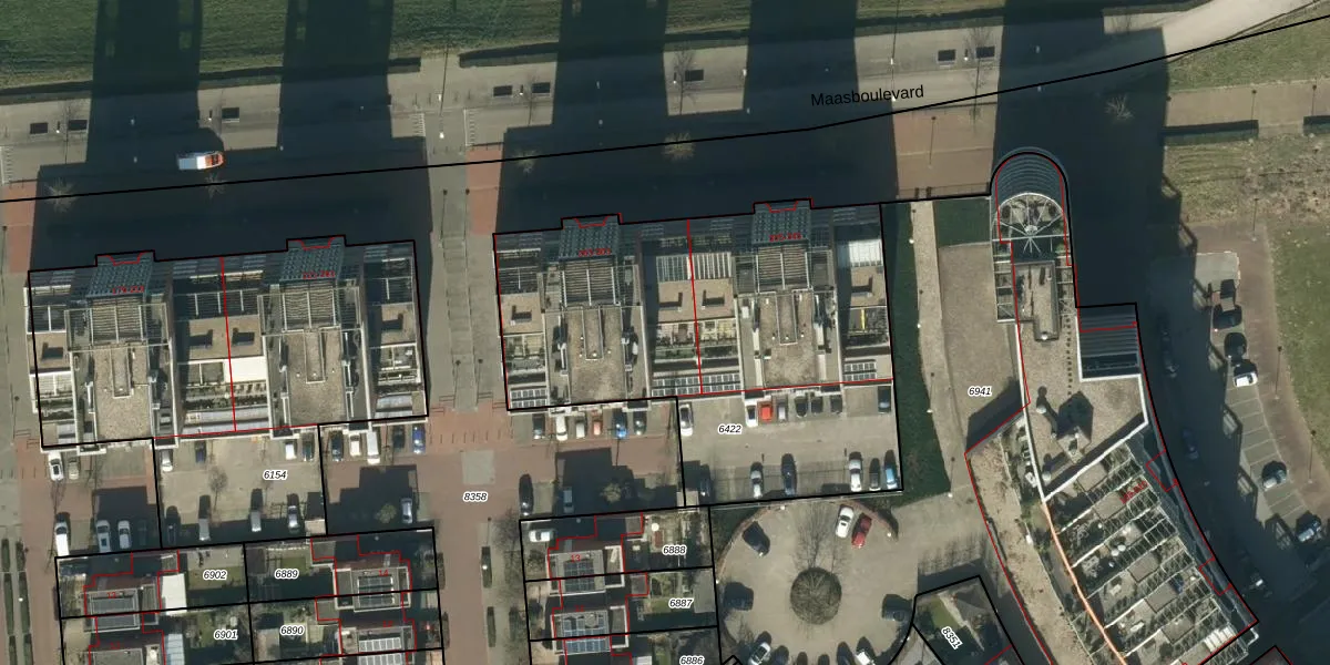 Het perceel waarop Maasboulevard 287 staat heeft een oppervlakte van 2120 m². Dit is een zeer groot perceel. De perceeloppervlakte wordt geregistreerd door het Kadaster. Gedetailleerde informatie over de maten van dit perceel kunt u vinden in het rapport Kadastrale kaart met maatvoering van Maasboulevard 287.