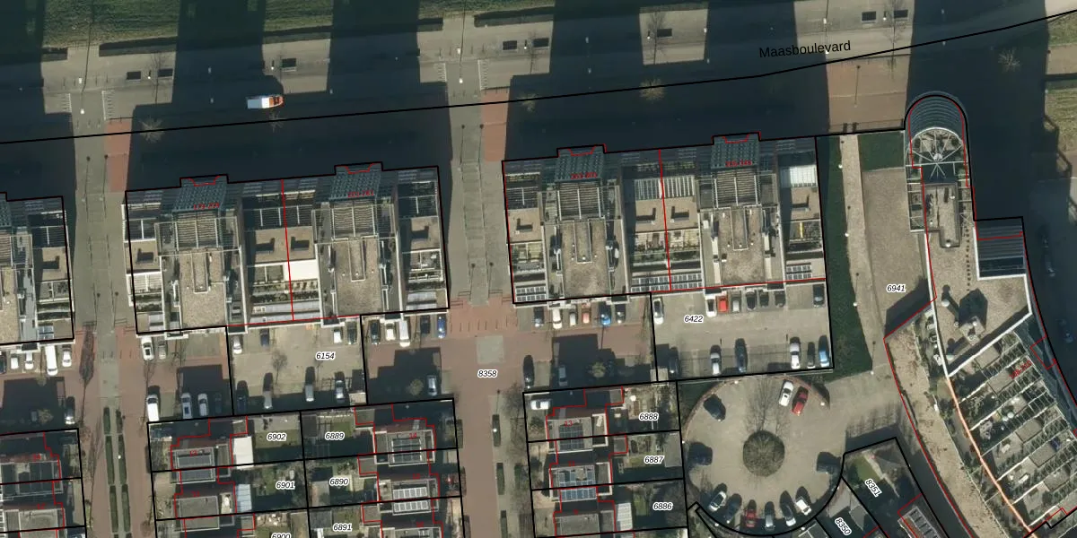 Het perceel waarop Maasboulevard 297 staat heeft een oppervlakte van 2120 m². Dit is een zeer groot perceel. De perceeloppervlakte wordt geregistreerd door het Kadaster. Gedetailleerde informatie over de maten van dit perceel kunt u vinden in het rapport Kadastrale kaart met maatvoering van Maasboulevard 297.