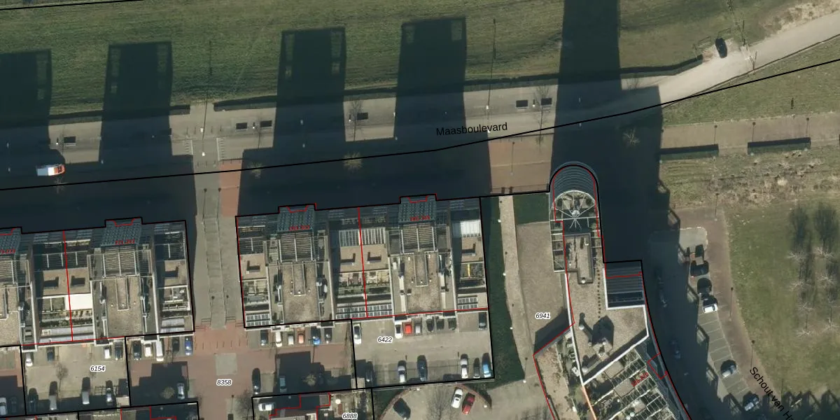 Het perceel waarop Maasboulevard 307 staat heeft een oppervlakte van 2120 m². Dit is een zeer groot perceel. De perceeloppervlakte wordt geregistreerd door het Kadaster. Gedetailleerde informatie over de maten van dit perceel kunt u vinden in het rapport Kadastrale kaart met maatvoering van Maasboulevard 307.