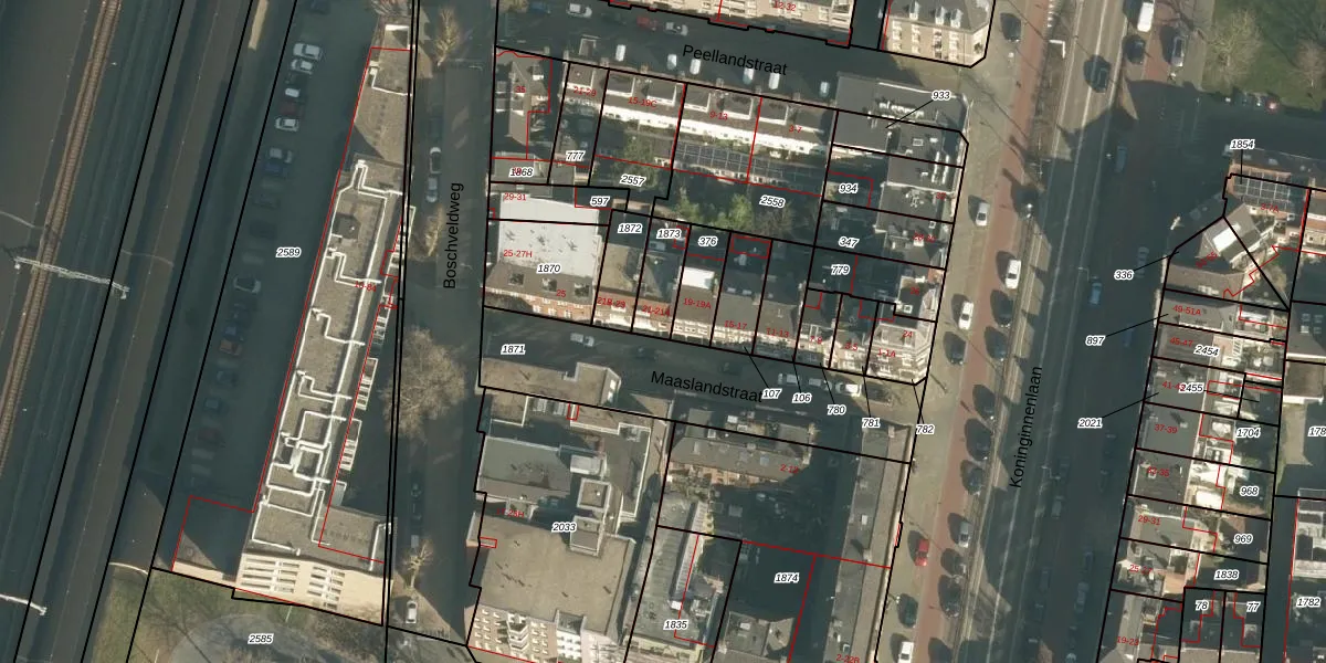 Het perceel waarop Maaslandstraat 21 staat heeft een oppervlakte van 105 m². Dit is een middelgroot perceel. De perceeloppervlakte wordt geregistreerd door het Kadaster. Gedetailleerde informatie over de maten van dit perceel kunt u vinden in het rapport Kadastrale kaart met maatvoering van Maaslandstraat 21.