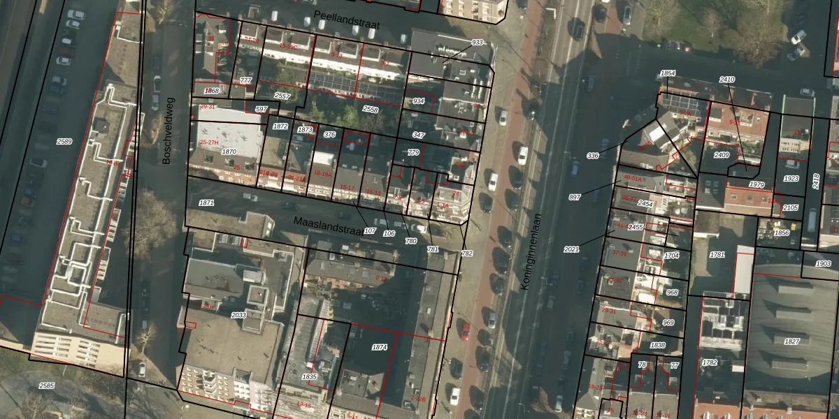Het perceel waarop Maaslandstraat 3 staat heeft een oppervlakte van 60 m². Dit is een klein perceel. De perceeloppervlakte wordt geregistreerd door het Kadaster. Gedetailleerde informatie over de maten van dit perceel kunt u vinden in het rapport Kadastrale kaart met maatvoering van Maaslandstraat 3.