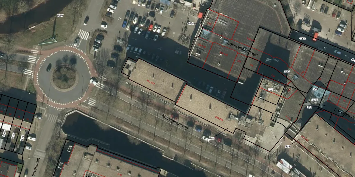 Maaspoortweg 325 is gelegen op kadastraal perceel HTG00T704. Deze kadastrale aanduiding is uniek en wordt gebruikt door het Kadaster om eigendomsrechten en andere zakelijke rechten vast te leggen. Het perceel maakt onderdeel uit van de kadastrale gemeente 's-Hertogenbosch.