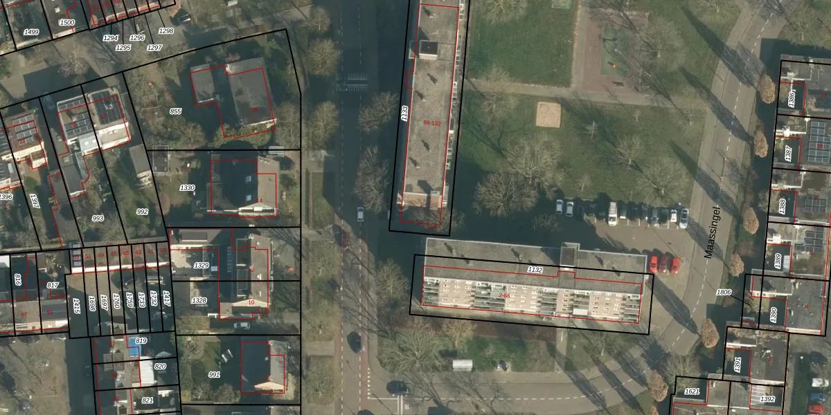 Het perceel waarop Maassingel 106 staat heeft een oppervlakte van 839 m². Dit is een groot perceel. De perceeloppervlakte wordt geregistreerd door het Kadaster. Gedetailleerde informatie over de maten van dit perceel kunt u vinden in het rapport Kadastrale kaart met maatvoering van Maassingel 106.
