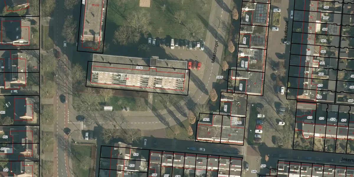 Het perceel waarop Maassingel 12 staat heeft een oppervlakte van 838 m². Dit is een groot perceel. De perceeloppervlakte wordt geregistreerd door het Kadaster. Gedetailleerde informatie over de maten van dit perceel kunt u vinden in het rapport Kadastrale kaart met maatvoering van Maassingel 12.