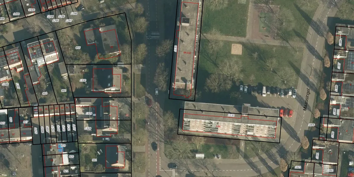 Het perceel waarop Maassingel 120 staat heeft een oppervlakte van 839 m². Dit is een groot perceel. De perceeloppervlakte wordt geregistreerd door het Kadaster. Gedetailleerde informatie over de maten van dit perceel kunt u vinden in het rapport Kadastrale kaart met maatvoering van Maassingel 120.