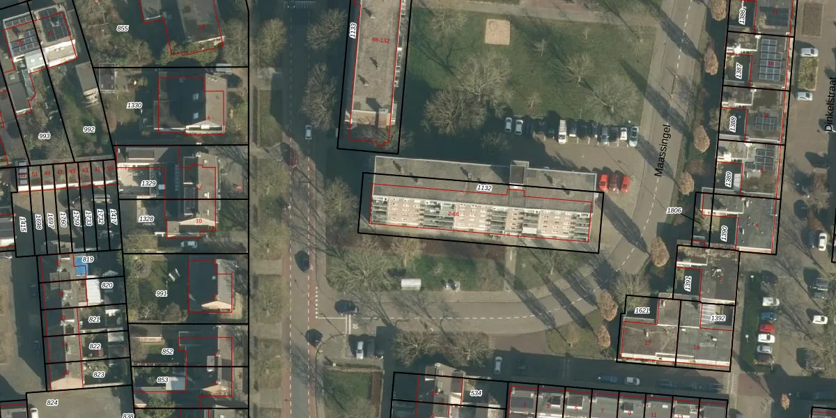 Het perceel waarop Maassingel 28 staat heeft een oppervlakte van 838 m². Dit is een groot perceel. De perceeloppervlakte wordt geregistreerd door het Kadaster. Gedetailleerde informatie over de maten van dit perceel kunt u vinden in het rapport Kadastrale kaart met maatvoering van Maassingel 28.