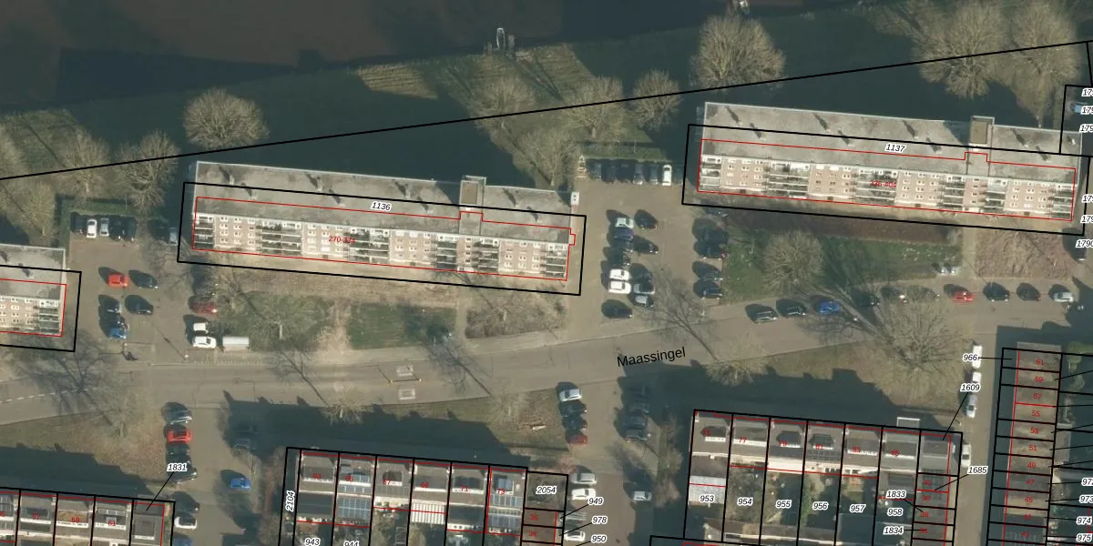 Het perceel waarop Maassingel 284 staat heeft een oppervlakte van 1071 m². Dit is een zeer groot perceel. De perceeloppervlakte wordt geregistreerd door het Kadaster. Gedetailleerde informatie over de maten van dit perceel kunt u vinden in het rapport Kadastrale kaart met maatvoering van Maassingel 284.