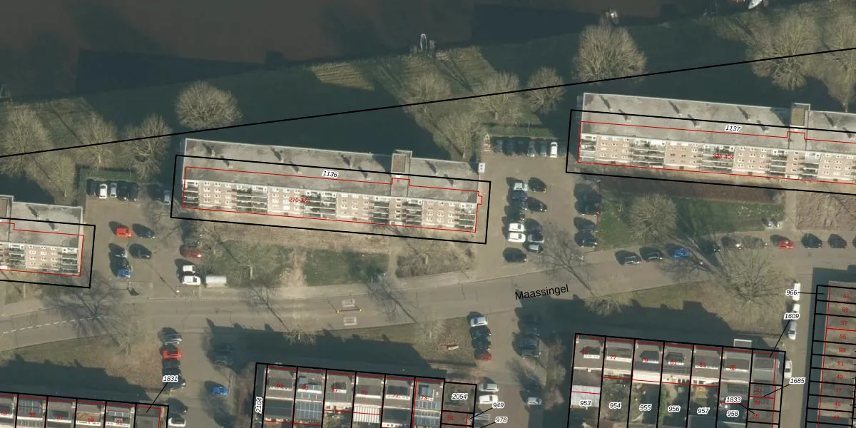 Het perceel waarop Maassingel 298 staat heeft een oppervlakte van 1071 m². Dit is een zeer groot perceel. De perceeloppervlakte wordt geregistreerd door het Kadaster. Gedetailleerde informatie over de maten van dit perceel kunt u vinden in het rapport Kadastrale kaart met maatvoering van Maassingel 298.