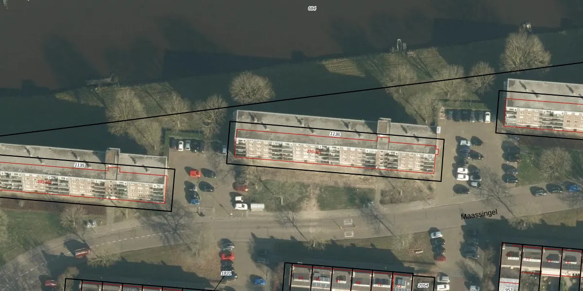 Het perceel waarop Maassingel 306 staat heeft een oppervlakte van 1071 m². Dit is een zeer groot perceel. De perceeloppervlakte wordt geregistreerd door het Kadaster. Gedetailleerde informatie over de maten van dit perceel kunt u vinden in het rapport Kadastrale kaart met maatvoering van Maassingel 306.