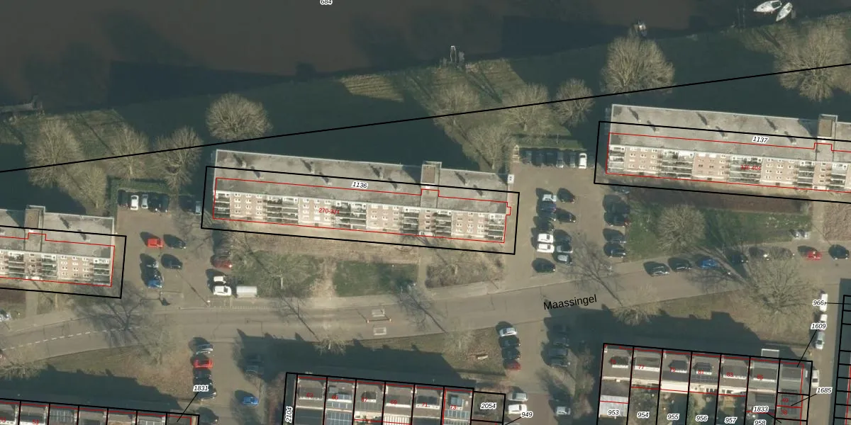 Het perceel waarop Maassingel 312 staat heeft een oppervlakte van 1071 m². Dit is een zeer groot perceel. De perceeloppervlakte wordt geregistreerd door het Kadaster. Gedetailleerde informatie over de maten van dit perceel kunt u vinden in het rapport Kadastrale kaart met maatvoering van Maassingel 312.