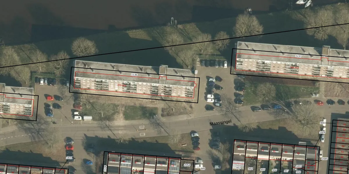 Het perceel waarop Maassingel 314 staat heeft een oppervlakte van 1071 m². Dit is een zeer groot perceel. De perceeloppervlakte wordt geregistreerd door het Kadaster. Gedetailleerde informatie over de maten van dit perceel kunt u vinden in het rapport Kadastrale kaart met maatvoering van Maassingel 314.