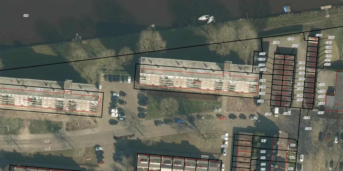 Het perceel waarop Maassingel 340 staat heeft een oppervlakte van 1071 m². Dit is een zeer groot perceel. De perceeloppervlakte wordt geregistreerd door het Kadaster. Gedetailleerde informatie over de maten van dit perceel kunt u vinden in het rapport Kadastrale kaart met maatvoering van Maassingel 340.