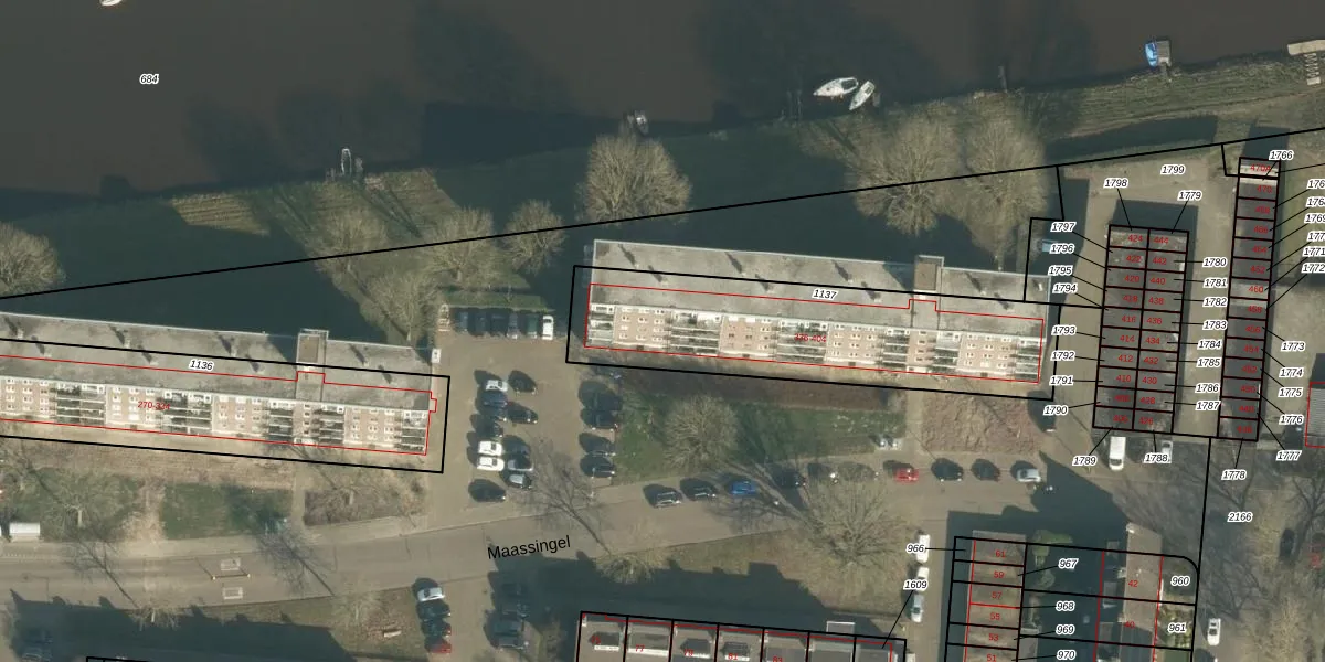 Het perceel waarop Maassingel 354 staat heeft een oppervlakte van 1071 m². Dit is een zeer groot perceel. De perceeloppervlakte wordt geregistreerd door het Kadaster. Gedetailleerde informatie over de maten van dit perceel kunt u vinden in het rapport Kadastrale kaart met maatvoering van Maassingel 354.