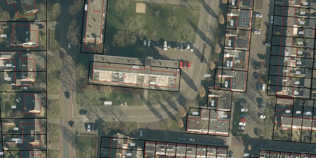 Het perceel waarop Maassingel 36 staat heeft een oppervlakte van 838 m². Dit is een groot perceel. De perceeloppervlakte wordt geregistreerd door het Kadaster. Gedetailleerde informatie over de maten van dit perceel kunt u vinden in het rapport Kadastrale kaart met maatvoering van Maassingel 36.