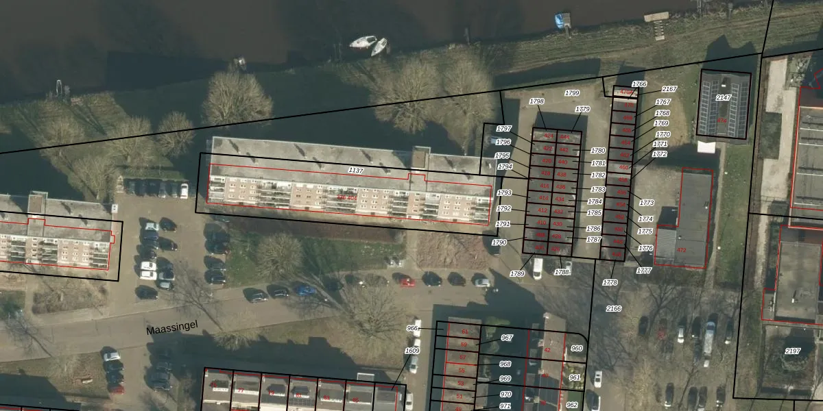 Het perceel waarop Maassingel 364 staat heeft een oppervlakte van 1071 m². Dit is een zeer groot perceel. De perceeloppervlakte wordt geregistreerd door het Kadaster. Gedetailleerde informatie over de maten van dit perceel kunt u vinden in het rapport Kadastrale kaart met maatvoering van Maassingel 364.