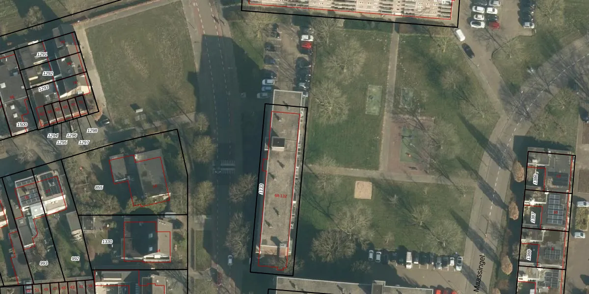 Het perceel waarop Maassingel 76 staat heeft een oppervlakte van 839 m². Dit is een groot perceel. De perceeloppervlakte wordt geregistreerd door het Kadaster. Gedetailleerde informatie over de maten van dit perceel kunt u vinden in het rapport Kadastrale kaart met maatvoering van Maassingel 76.