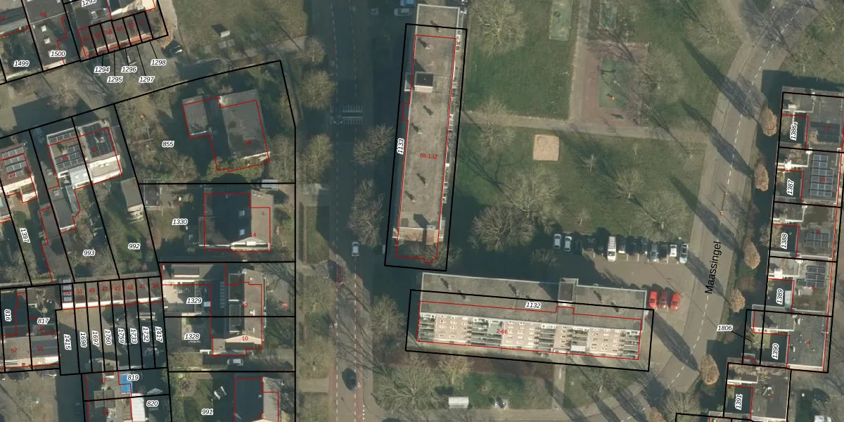 Het perceel waarop Maassingel 94 staat heeft een oppervlakte van 839 m². Dit is een groot perceel. De perceeloppervlakte wordt geregistreerd door het Kadaster. Gedetailleerde informatie over de maten van dit perceel kunt u vinden in het rapport Kadastrale kaart met maatvoering van Maassingel 94.