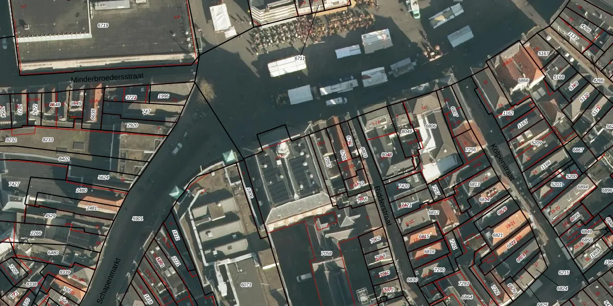Het perceel waarop Markt 1 staat heeft een oppervlakte van 2022 m². Dit is een zeer groot perceel. De perceeloppervlakte wordt geregistreerd door het Kadaster. Gedetailleerde informatie over de maten van dit perceel kunt u vinden in het rapport Kadastrale kaart met maatvoering van Markt 1.