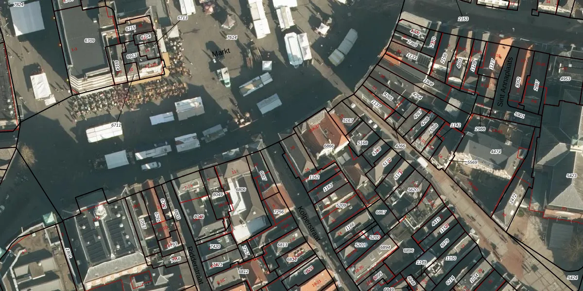 Het perceel waarop Markt 15 staat heeft een oppervlakte van 177 m². Dit is een middelgroot perceel. De perceeloppervlakte wordt geregistreerd door het Kadaster. Gedetailleerde informatie over de maten van dit perceel kunt u vinden in het rapport Kadastrale kaart met maatvoering van Markt 15.