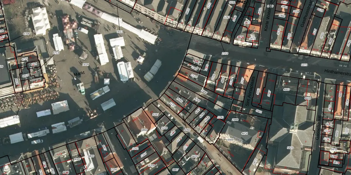 Het perceel waarop Markt 25 staat heeft een oppervlakte van 206 m². Dit is een middelgroot perceel. De perceeloppervlakte wordt geregistreerd door het Kadaster. Gedetailleerde informatie over de maten van dit perceel kunt u vinden in het rapport Kadastrale kaart met maatvoering van Markt 25.
