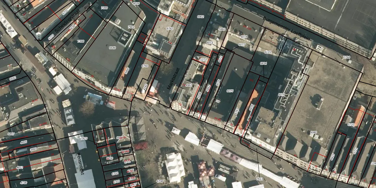 Het perceel waarop Marktstraat 1-A staat heeft een oppervlakte van 273 m². Dit is een middelgroot perceel. De perceeloppervlakte wordt geregistreerd door het Kadaster. Gedetailleerde informatie over de maten van dit perceel kunt u vinden in het rapport Kadastrale kaart met maatvoering van Marktstraat 1-A.