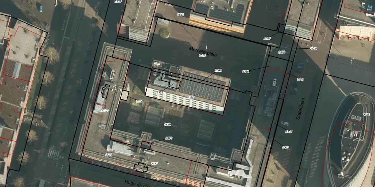 Het perceel waarop Mercatorplein 5 staat heeft een oppervlakte van 557 m². Dit is een groot perceel. De perceeloppervlakte wordt geregistreerd door het Kadaster. Gedetailleerde informatie over de maten van dit perceel kunt u vinden in het rapport Kadastrale kaart met maatvoering van Mercatorplein 5.