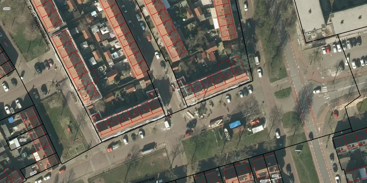Het perceel waarop Mgr. van Schaikstraat 30 staat heeft een oppervlakte van 6202 m². Dit is een zeer groot perceel. De perceeloppervlakte wordt geregistreerd door het Kadaster. Gedetailleerde informatie over de maten van dit perceel kunt u vinden in het rapport Kadastrale kaart met maatvoering van Mgr. van Schaikstraat 30.