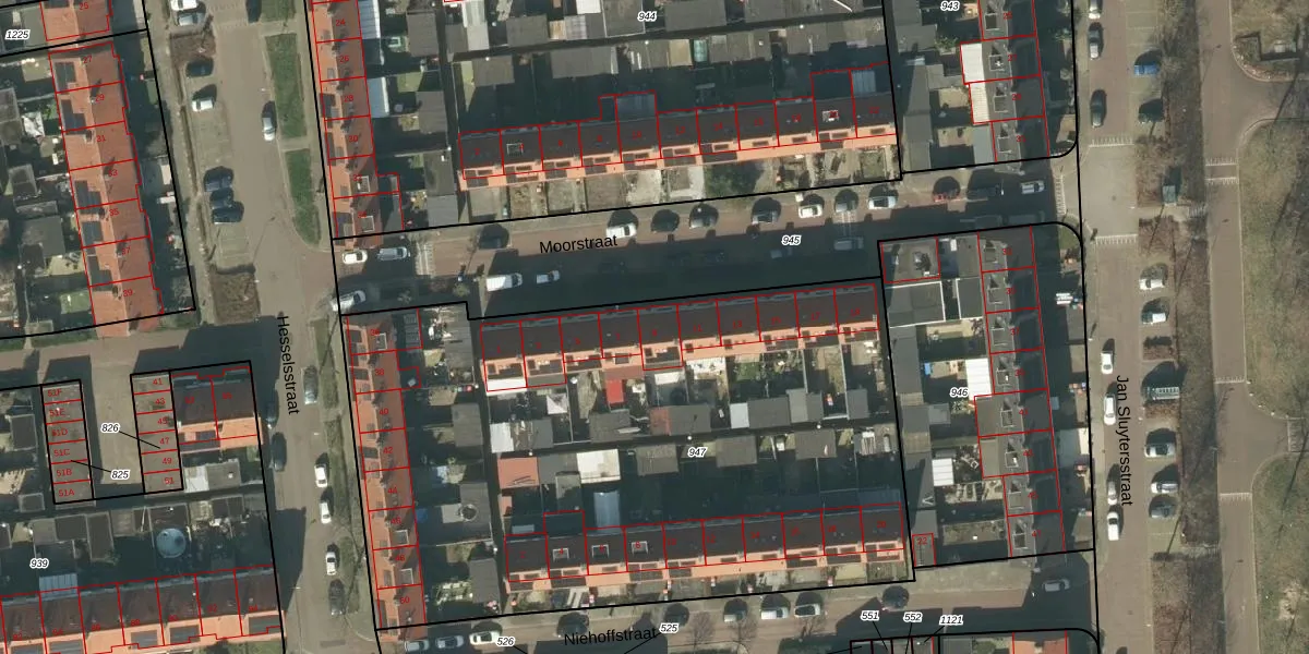 Het perceel waarop Moorstraat 9 staat heeft een oppervlakte van 3874 m². Dit is een zeer groot perceel. De perceeloppervlakte wordt geregistreerd door het Kadaster. Gedetailleerde informatie over de maten van dit perceel kunt u vinden in het rapport Kadastrale kaart met maatvoering van Moorstraat 9.