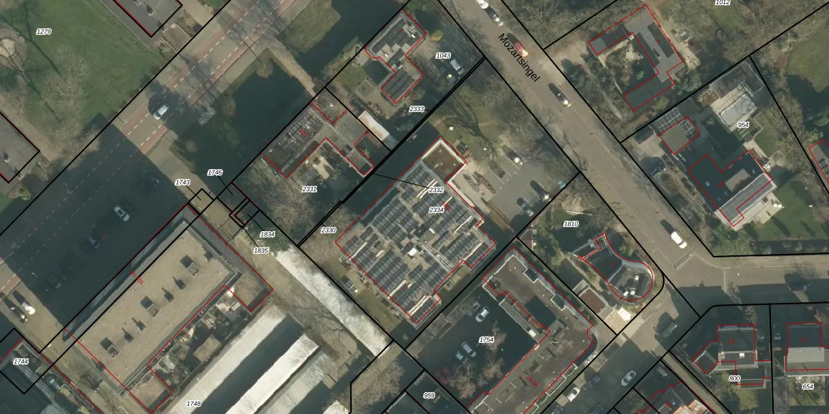 Het perceel waarop Mozartsingel 5-G staat heeft een oppervlakte van 2203 m². Dit is een zeer groot perceel. De perceeloppervlakte wordt geregistreerd door het Kadaster. Gedetailleerde informatie over de maten van dit perceel kunt u vinden in het rapport Kadastrale kaart met maatvoering van Mozartsingel 5-G.