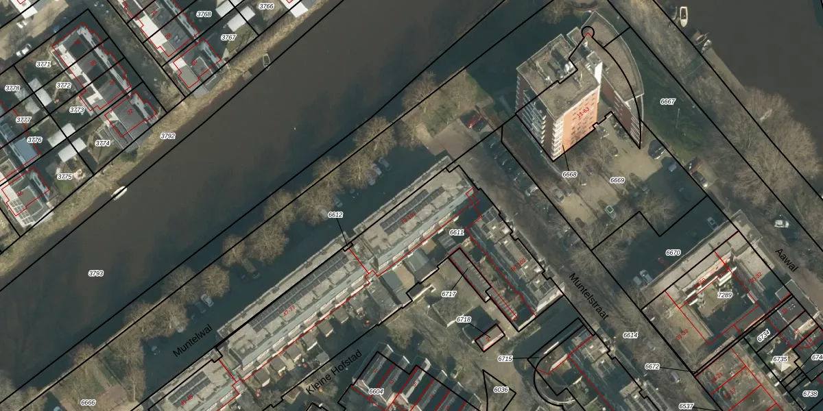 Het perceel waarop Muntelwal 83 staat heeft een oppervlakte van 2145 m². Dit is een zeer groot perceel. De perceeloppervlakte wordt geregistreerd door het Kadaster. Gedetailleerde informatie over de maten van dit perceel kunt u vinden in het rapport Kadastrale kaart met maatvoering van Muntelwal 83.