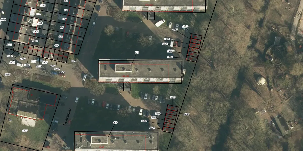 Het perceel waarop Neerstraat 159 staat heeft een oppervlakte van 845 m². Dit is een groot perceel. De perceeloppervlakte wordt geregistreerd door het Kadaster. Gedetailleerde informatie over de maten van dit perceel kunt u vinden in het rapport Kadastrale kaart met maatvoering van Neerstraat 159.