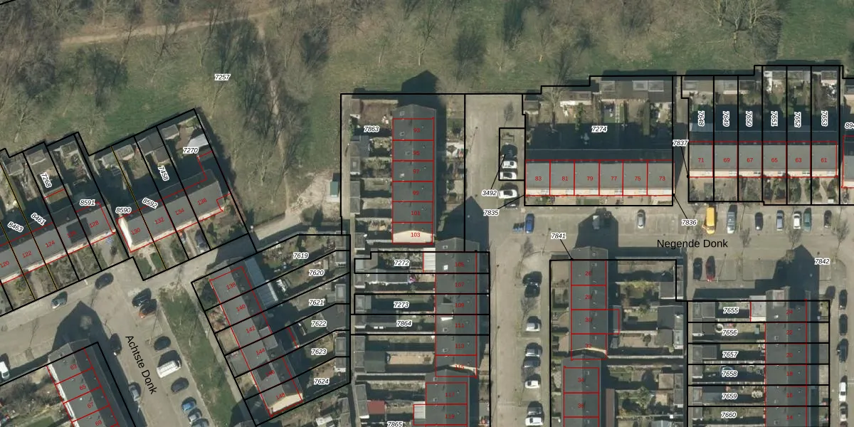 Negende Donk 101 is gelegen op kadastraal perceel HTG00O7863. Deze kadastrale aanduiding is uniek en wordt gebruikt door het Kadaster om eigendomsrechten en andere zakelijke rechten vast te leggen. Het perceel maakt onderdeel uit van de kadastrale gemeente 's-Hertogenbosch.