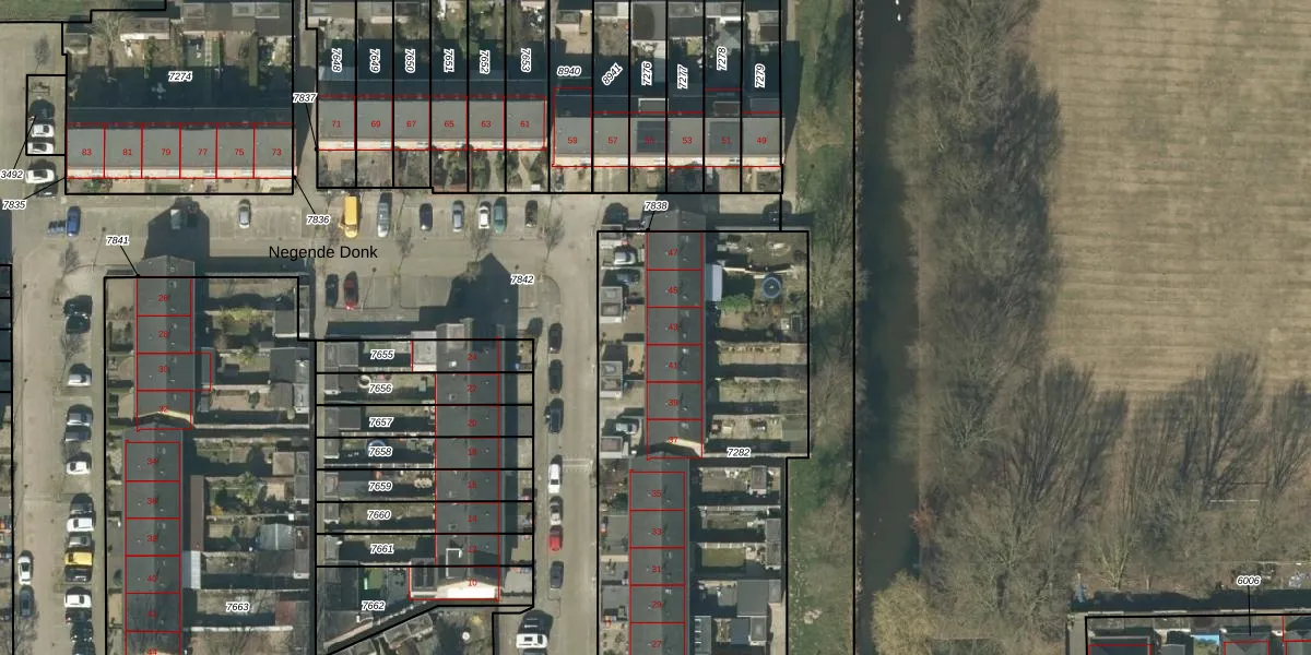Negende Donk 43 is gelegen op kadastraal perceel HTG00O7282. Deze kadastrale aanduiding is uniek en wordt gebruikt door het Kadaster om eigendomsrechten en andere zakelijke rechten vast te leggen. Het perceel maakt onderdeel uit van de kadastrale gemeente 's-Hertogenbosch.