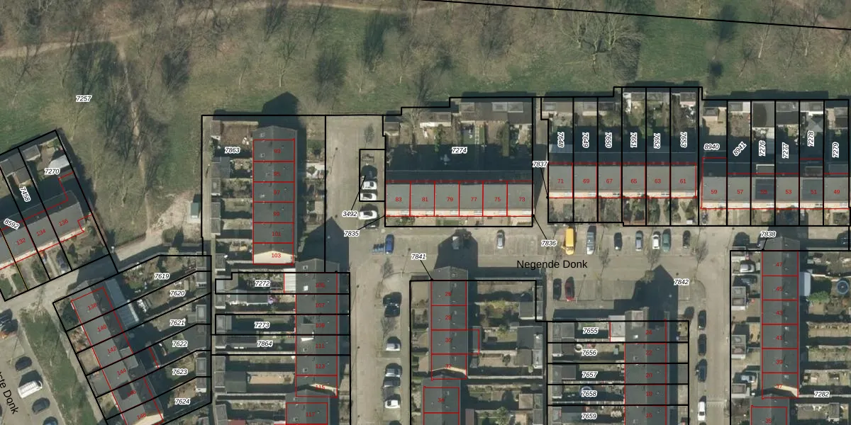 Negende Donk 81 is gelegen op kadastraal perceel HTG00O7274. Deze kadastrale aanduiding is uniek en wordt gebruikt door het Kadaster om eigendomsrechten en andere zakelijke rechten vast te leggen. Het perceel maakt onderdeel uit van de kadastrale gemeente 's-Hertogenbosch.