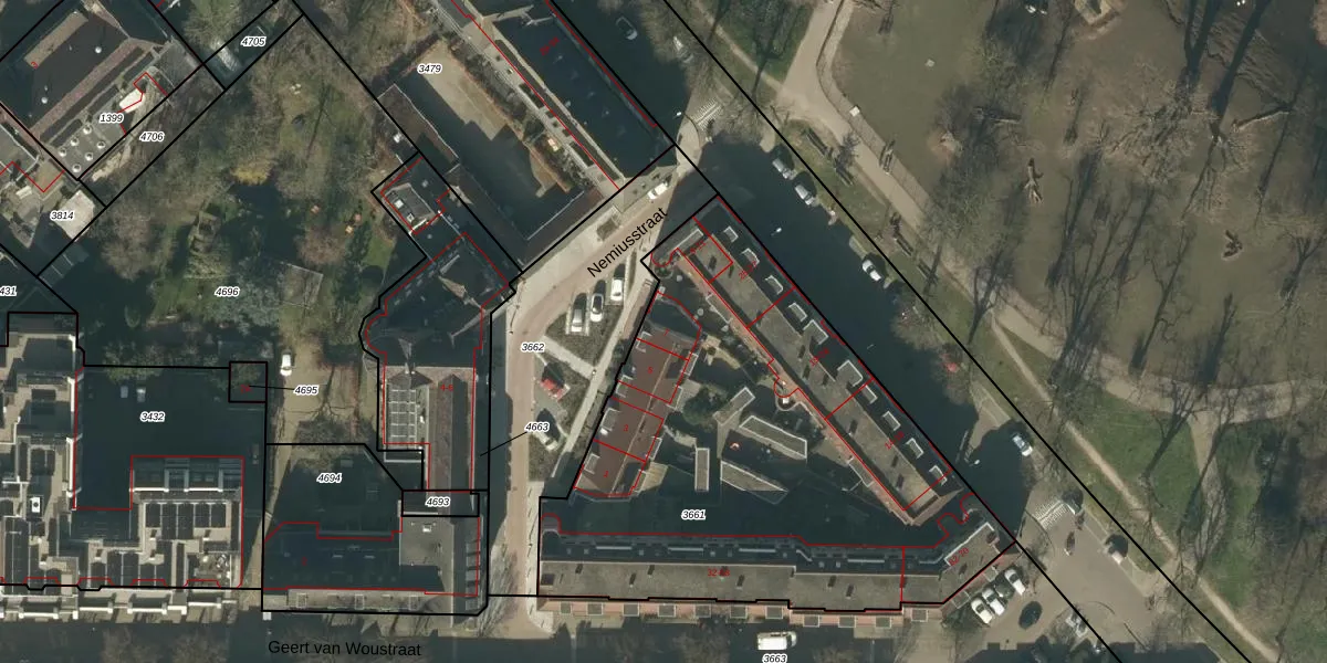 Het perceel waarop Nemiusstraat 7 staat heeft een oppervlakte van 2571 m². Dit is een zeer groot perceel. De perceeloppervlakte wordt geregistreerd door het Kadaster. Gedetailleerde informatie over de maten van dit perceel kunt u vinden in het rapport Kadastrale kaart met maatvoering van Nemiusstraat 7.