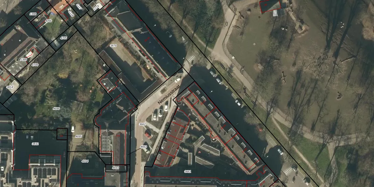 Het perceel waarop Nemiusstraat 9 staat heeft een oppervlakte van 2571 m². Dit is een zeer groot perceel. De perceeloppervlakte wordt geregistreerd door het Kadaster. Gedetailleerde informatie over de maten van dit perceel kunt u vinden in het rapport Kadastrale kaart met maatvoering van Nemiusstraat 9.