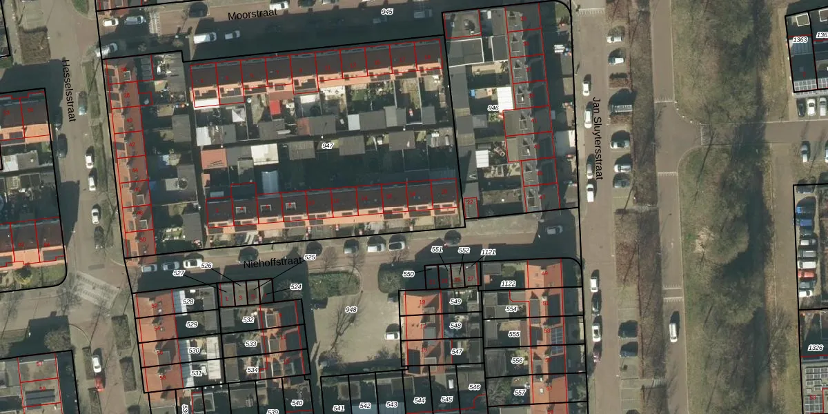 Het perceel waarop Niehoffstraat 18 staat heeft een oppervlakte van 3874 m². Dit is een zeer groot perceel. De perceeloppervlakte wordt geregistreerd door het Kadaster. Gedetailleerde informatie over de maten van dit perceel kunt u vinden in het rapport Kadastrale kaart met maatvoering van Niehoffstraat 18.