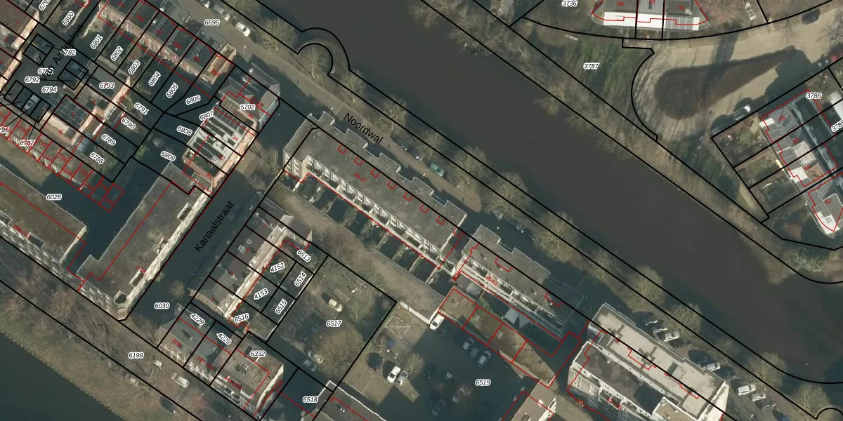 Het perceel waarop Noordwal 30 staat heeft een oppervlakte van 7728 m². Dit is een zeer groot perceel. De perceeloppervlakte wordt geregistreerd door het Kadaster. Gedetailleerde informatie over de maten van dit perceel kunt u vinden in het rapport Kadastrale kaart met maatvoering van Noordwal 30.