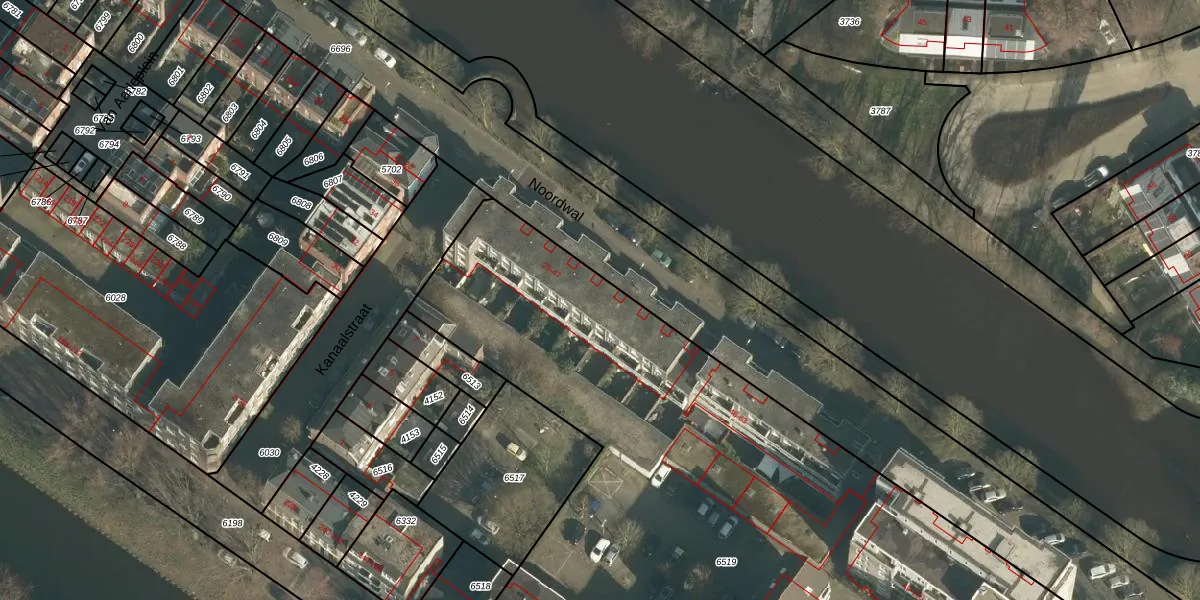 Het perceel waarop Noordwal 37 staat heeft een oppervlakte van 7728 m². Dit is een zeer groot perceel. De perceeloppervlakte wordt geregistreerd door het Kadaster. Gedetailleerde informatie over de maten van dit perceel kunt u vinden in het rapport Kadastrale kaart met maatvoering van Noordwal 37.