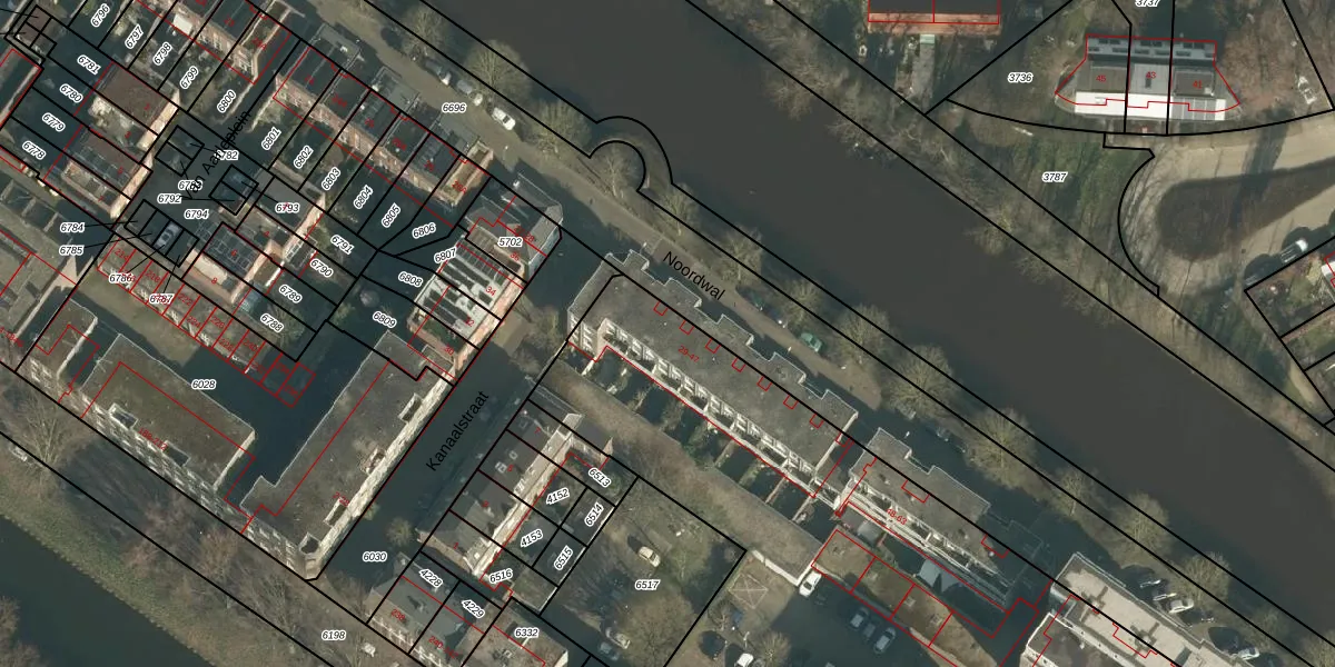 Het perceel waarop Noordwal 39 staat heeft een oppervlakte van 7728 m². Dit is een zeer groot perceel. De perceeloppervlakte wordt geregistreerd door het Kadaster. Gedetailleerde informatie over de maten van dit perceel kunt u vinden in het rapport Kadastrale kaart met maatvoering van Noordwal 39.