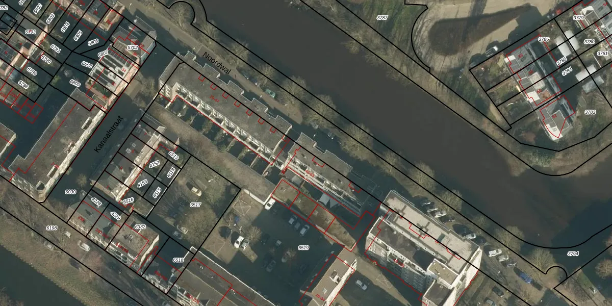 Het perceel waarop Noordwal 48 staat heeft een oppervlakte van 7728 m². Dit is een zeer groot perceel. De perceeloppervlakte wordt geregistreerd door het Kadaster. Gedetailleerde informatie over de maten van dit perceel kunt u vinden in het rapport Kadastrale kaart met maatvoering van Noordwal 48.