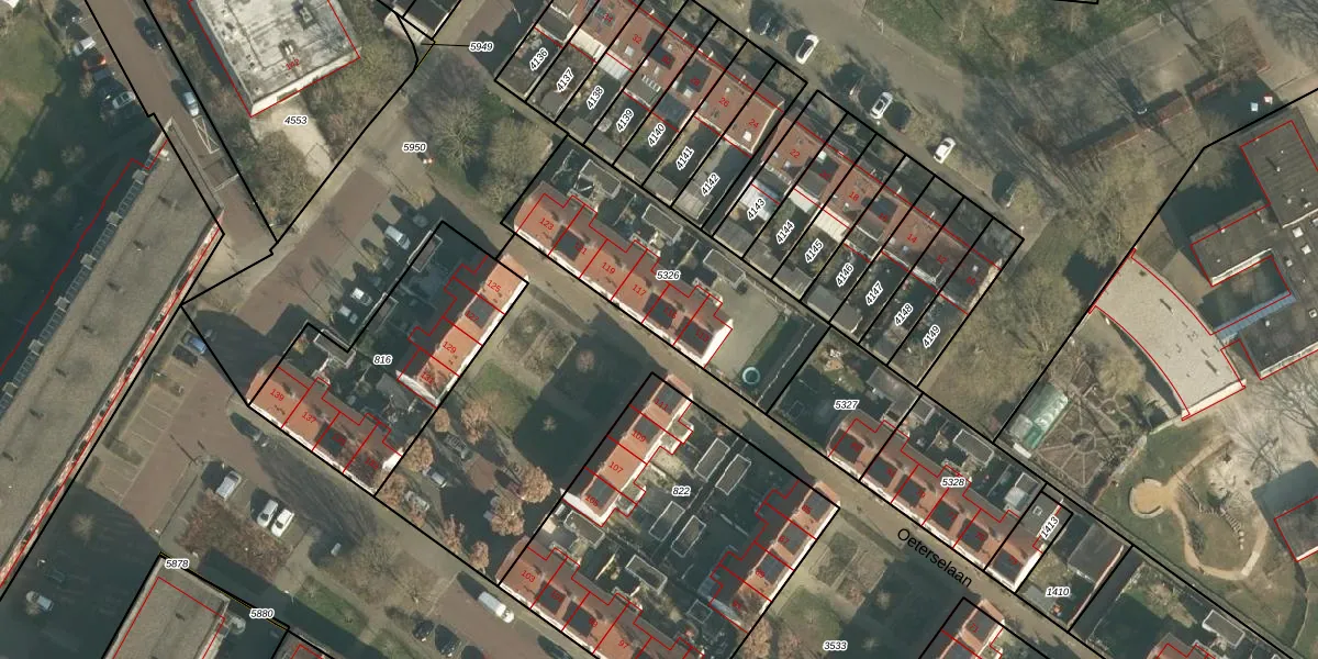 Oeterselaan 115 is gelegen op kadastraal perceel HTG00K5326. Deze kadastrale aanduiding is uniek en wordt gebruikt door het Kadaster om eigendomsrechten en andere zakelijke rechten vast te leggen. Het perceel maakt onderdeel uit van de kadastrale gemeente 's-Hertogenbosch.