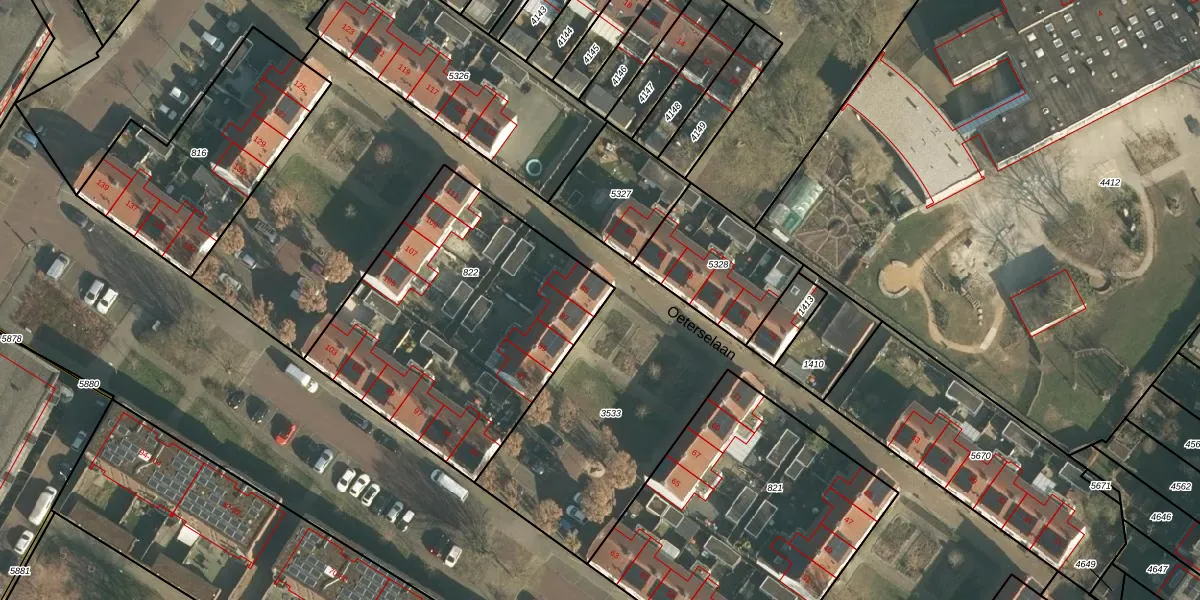 Het perceel waarop Oeterselaan 85 staat heeft een oppervlakte van 1405 m². Dit is een zeer groot perceel. De perceeloppervlakte wordt geregistreerd door het Kadaster. Gedetailleerde informatie over de maten van dit perceel kunt u vinden in het rapport Kadastrale kaart met maatvoering van Oeterselaan 85.