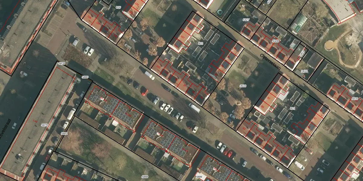 Oeterselaan 97 is gelegen op kadastraal perceel HTG00K822. Deze kadastrale aanduiding is uniek en wordt gebruikt door het Kadaster om eigendomsrechten en andere zakelijke rechten vast te leggen. Het perceel maakt onderdeel uit van de kadastrale gemeente 's-Hertogenbosch.