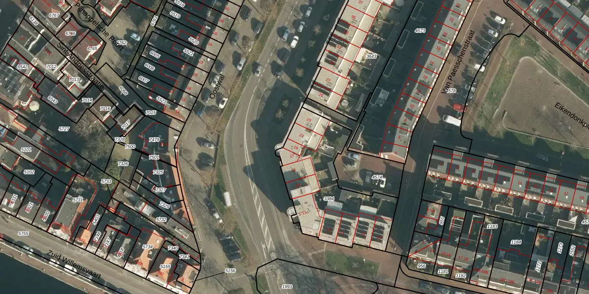 Het perceel waarop Oostwal 19 staat heeft een oppervlakte van 1060 m². Dit is een zeer groot perceel. De perceeloppervlakte wordt geregistreerd door het Kadaster. Gedetailleerde informatie over de maten van dit perceel kunt u vinden in het rapport Kadastrale kaart met maatvoering van Oostwal 19.