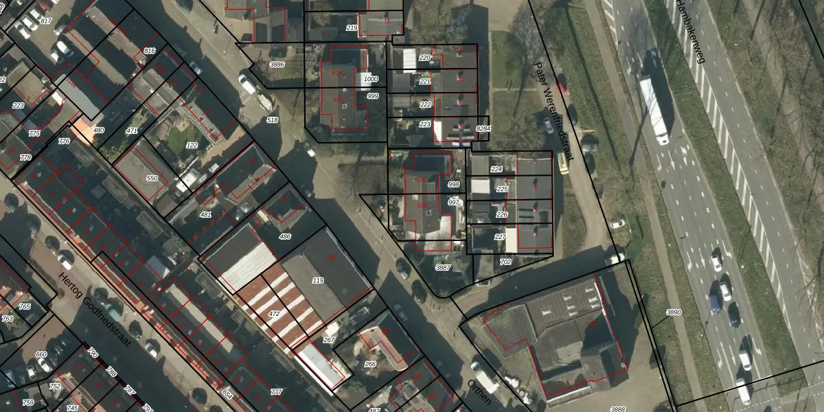 Orthen 53-E is gelegen op kadastraal perceel HTG00O997. Deze kadastrale aanduiding is uniek en wordt gebruikt door het Kadaster om eigendomsrechten en andere zakelijke rechten vast te leggen. Het perceel maakt onderdeel uit van de kadastrale gemeente 's-Hertogenbosch.