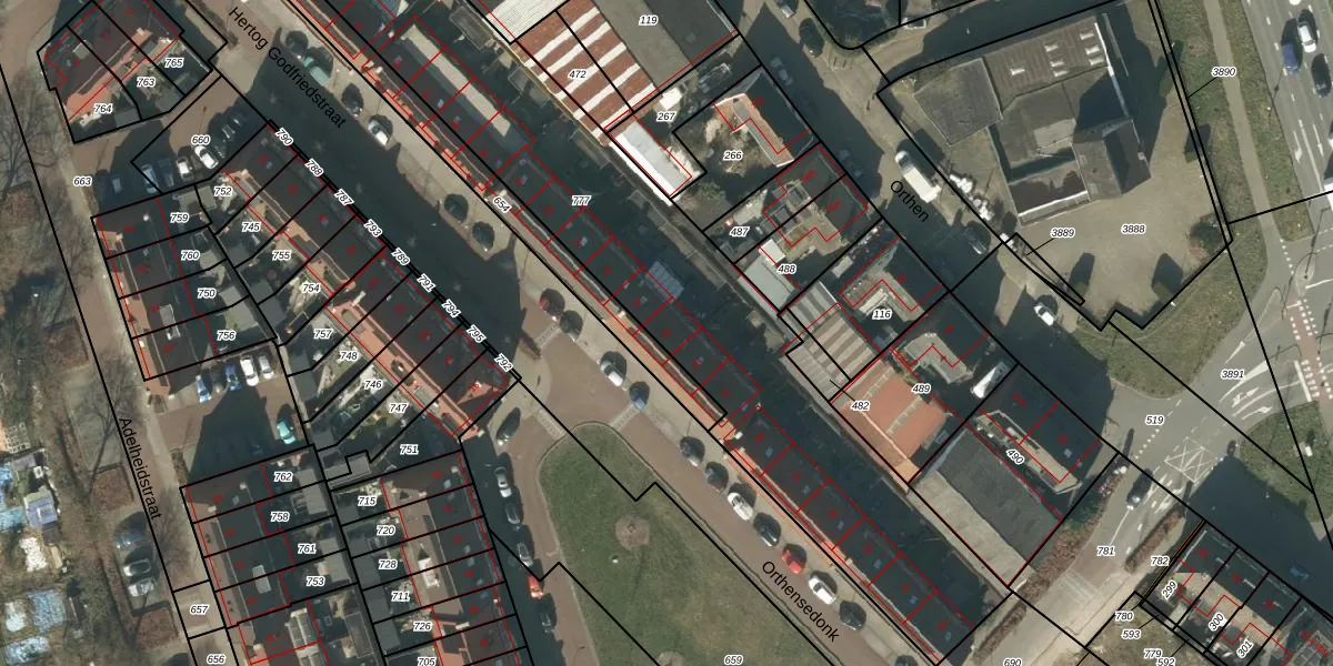 Het perceel waarop Orthensedonk 55 staat heeft een oppervlakte van 2825 m². Dit is een zeer groot perceel. De perceeloppervlakte wordt geregistreerd door het Kadaster. Gedetailleerde informatie over de maten van dit perceel kunt u vinden in het rapport Kadastrale kaart met maatvoering van Orthensedonk 55.